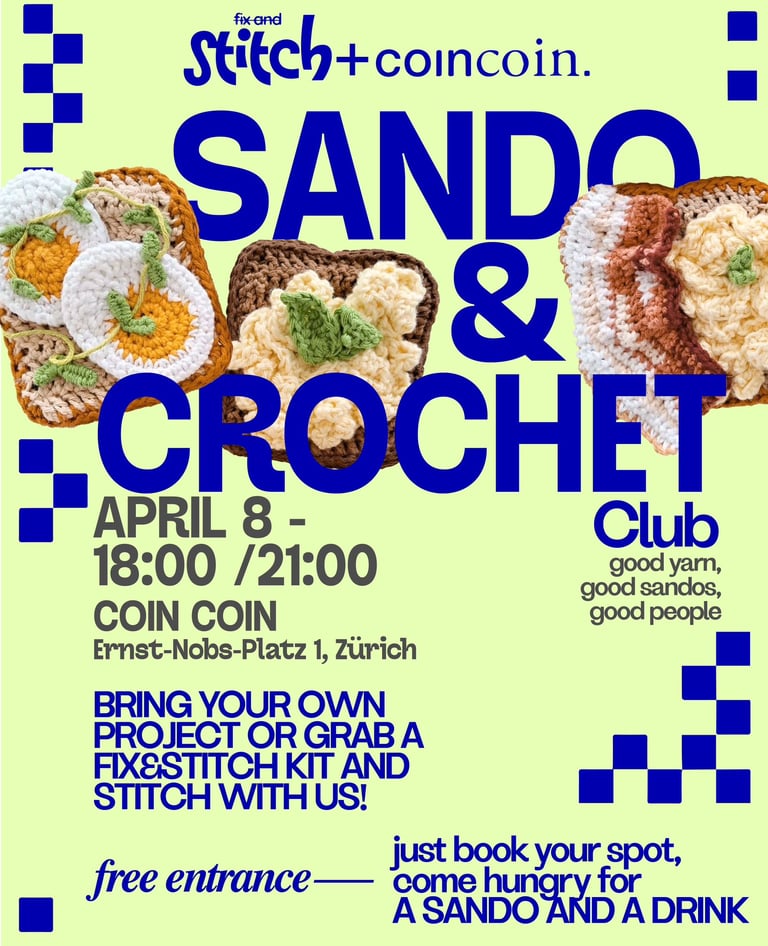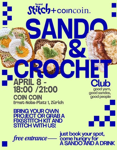 Crochet & Sando Club in Zurich | Sip, Eat & Stitch 🥪✨